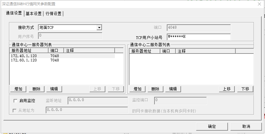 2、 B轉H行情網關通信程序的版本日期為20121126,參測單位可從深圳證券通信公司網站下載通信程序、安裝組件及用戶手冊等資料,下載地址為https://biz.sscc.com業務指引—程序下載—B股轉H股通信系統中;具體配置如圖(小站號復用已有的交易小站號,若無,在https://biz.sscc.com業務指引-業務申請表中下載申請):